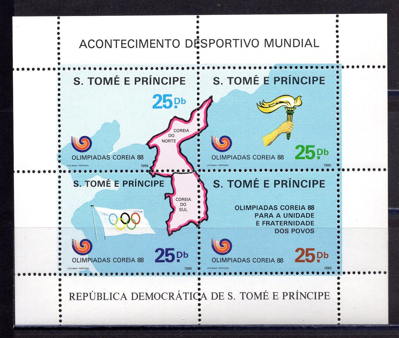 Почтовые марки. Сан-Томе. 1986г. Карты. Ол.Игры. Блок №167.