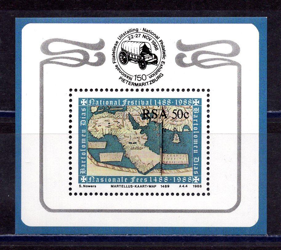 Почтовые марки. ЮАР. 1988г. Филвыст. Первые карты. Блок №20.