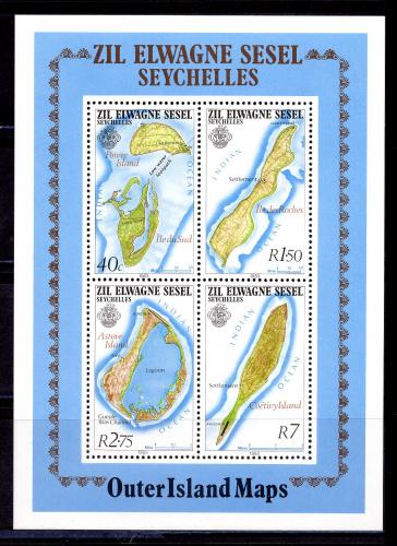 Почтовые марки. Сейшелы. 1983г. Карты и острова. Блок №2.