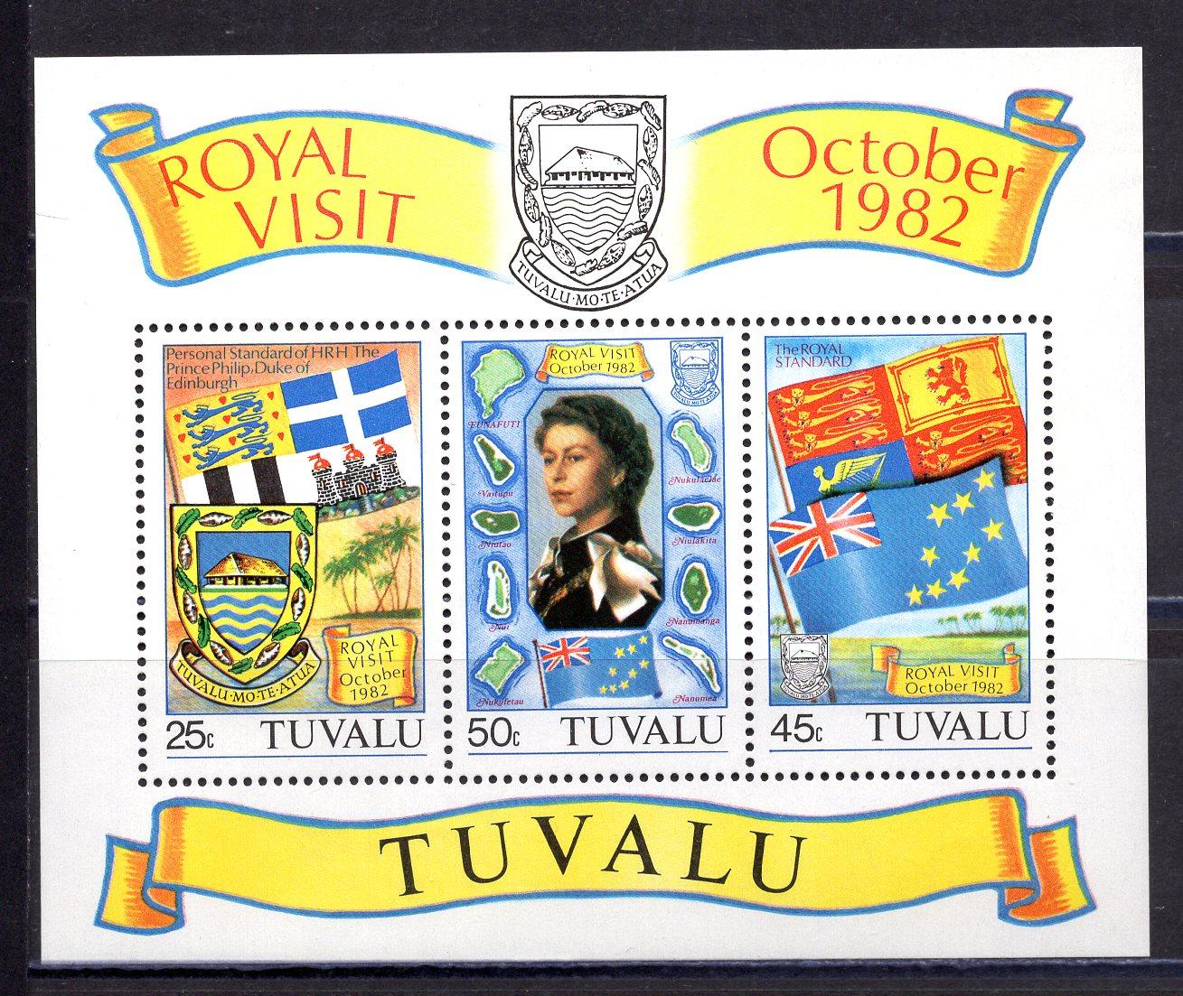 Почтовые марки. Тувалу. 1982г. Королевский Визит. Блок №7.