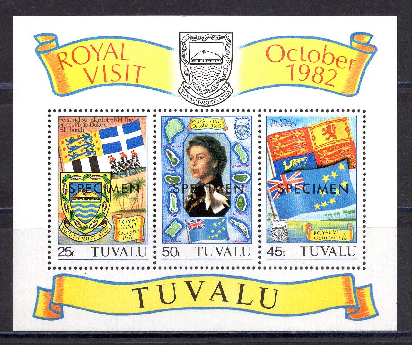Почтовые марки. Тувалу. 1982г. Королевский Визит. SPECIMEN. Блок №7.