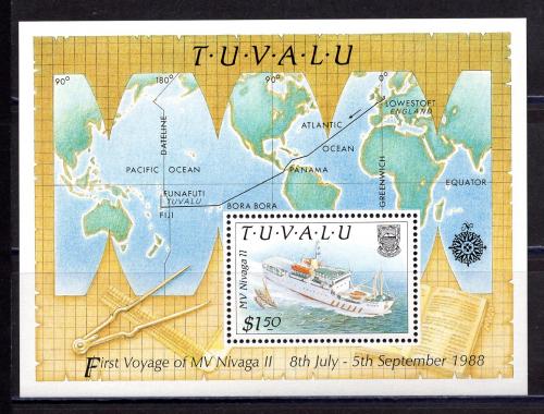 Почтовые марки. Тувалу. 1989г. Карты и Корабли. Блок №41.