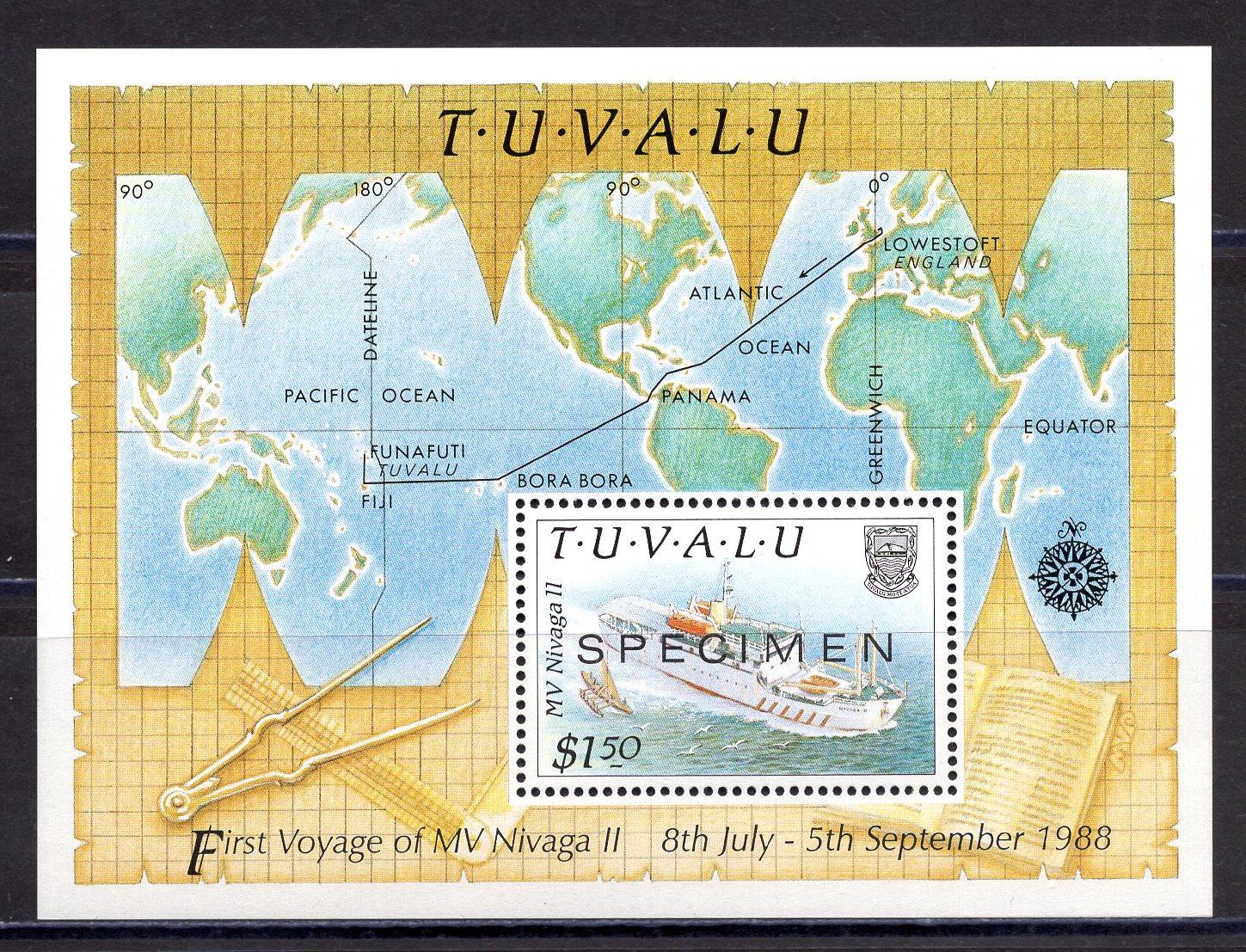 Почтовые марки. Тувалу. 1989г. Карты и Корабли. SPECIMEN. Блок №41.