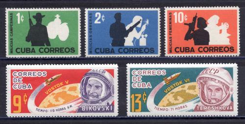 Почтовые марки. Куба. 1962-1964г. Народная милиция. Терешкова. №753-755, №910-911. Сборный лот.