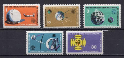Почтовые марки. Куба, 1965 г. Телеком. Космос. UIT. №1026-1030.
