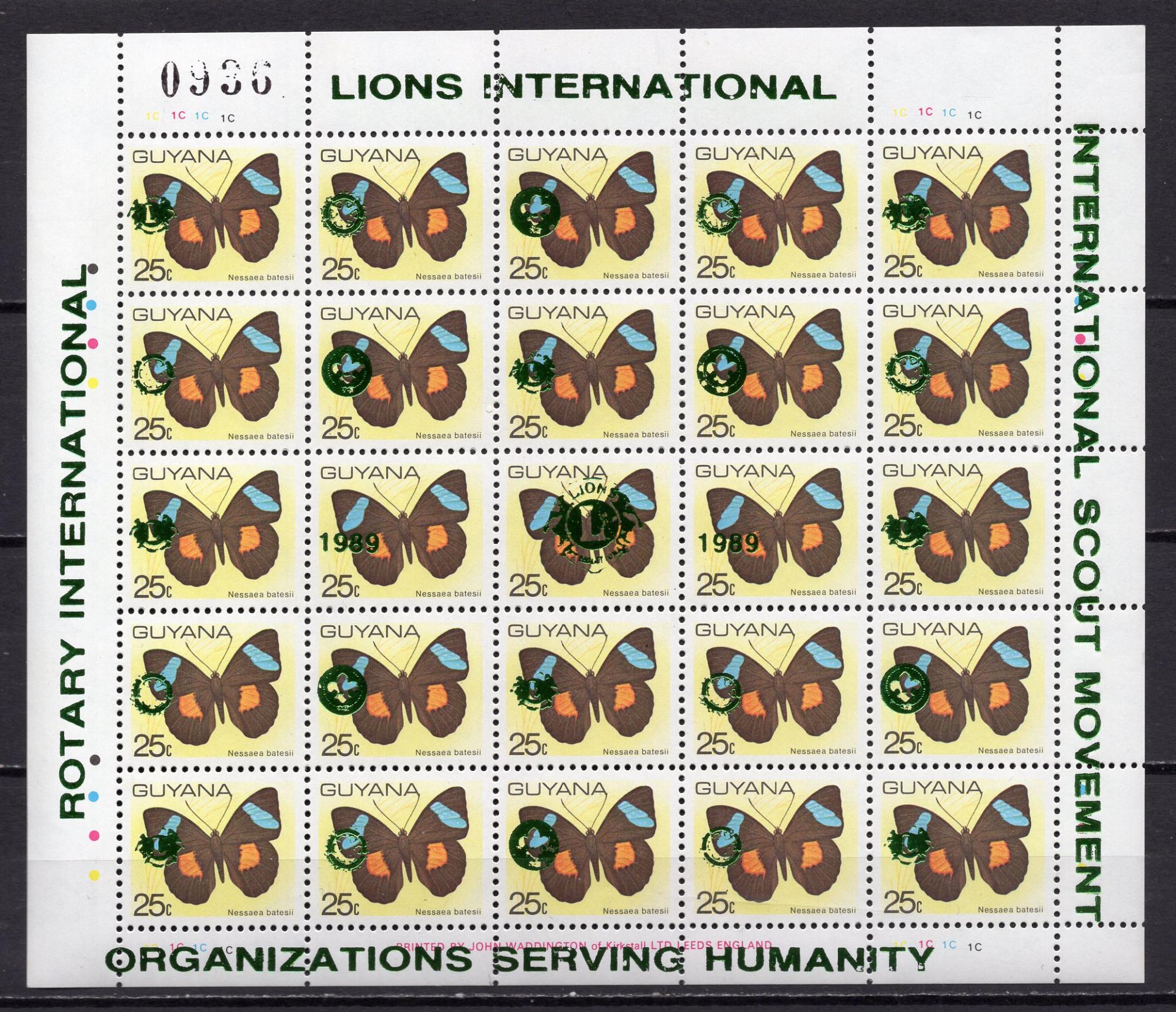 Почтовые марки. Гайана, 1984 г. День республики. Бабочки. Надпечатка зеленая. №1073-1080.