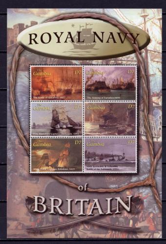 Почтовые марки. Гамбия, 2001 г. Флот Британии. Сражения. МЛ. №4544-49.