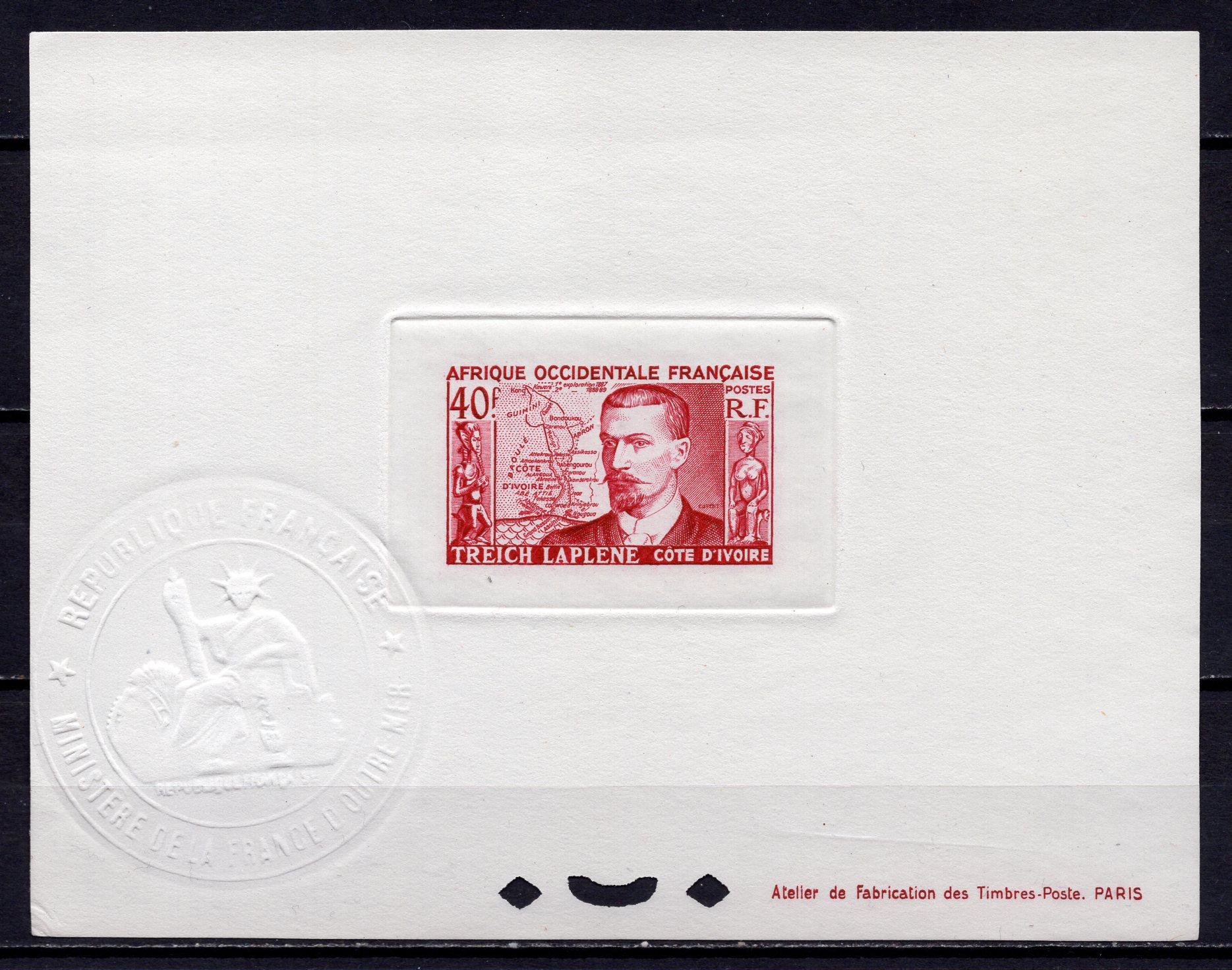 Почтовые марки. Кот-д’Ивуар, 1952 г. Путешественник Марсель Трейч-Лаплен. №63.
