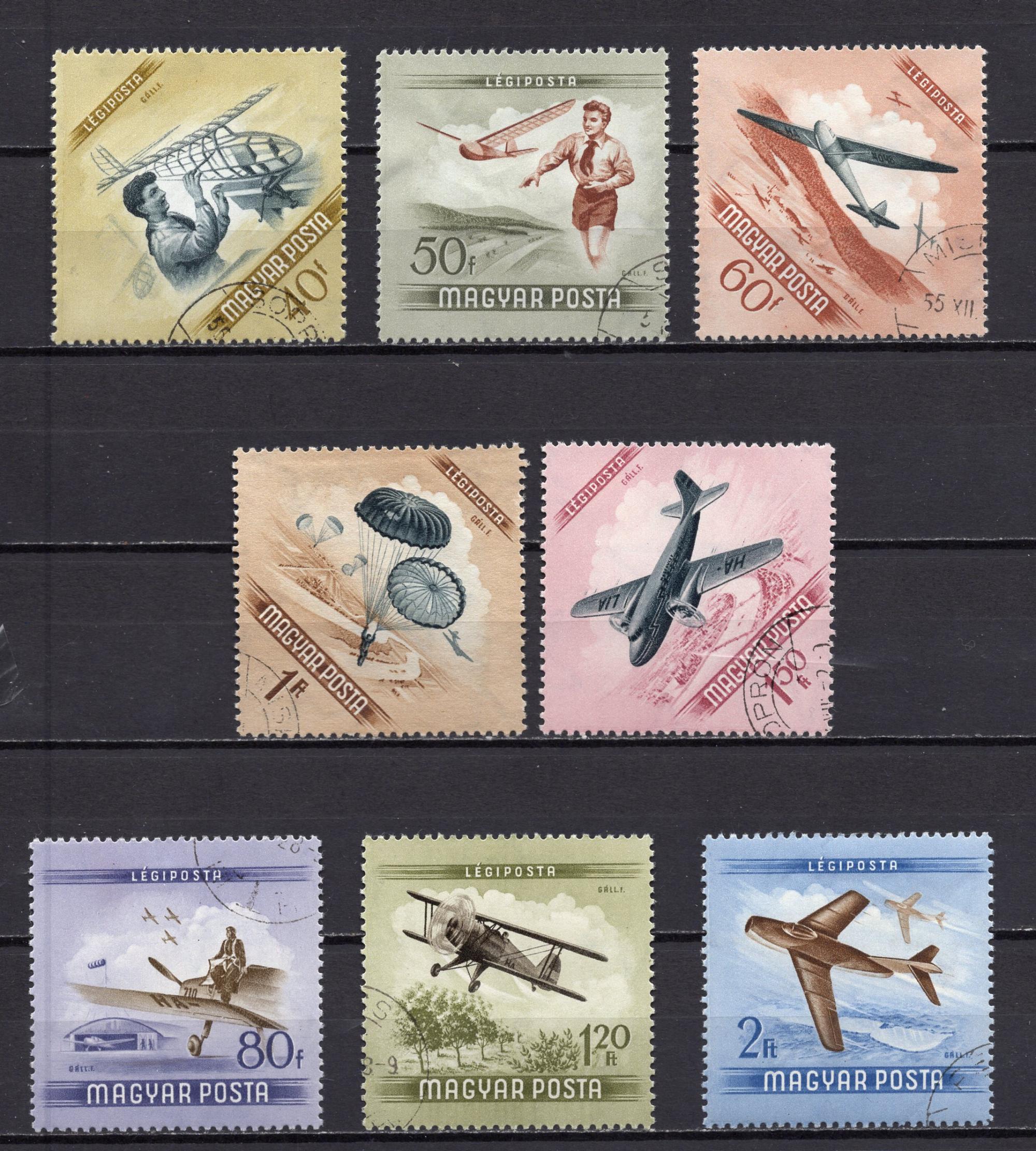 Почтовые марки. Венгрия, 1954 г. Авиамоделизм. №1376-1383.