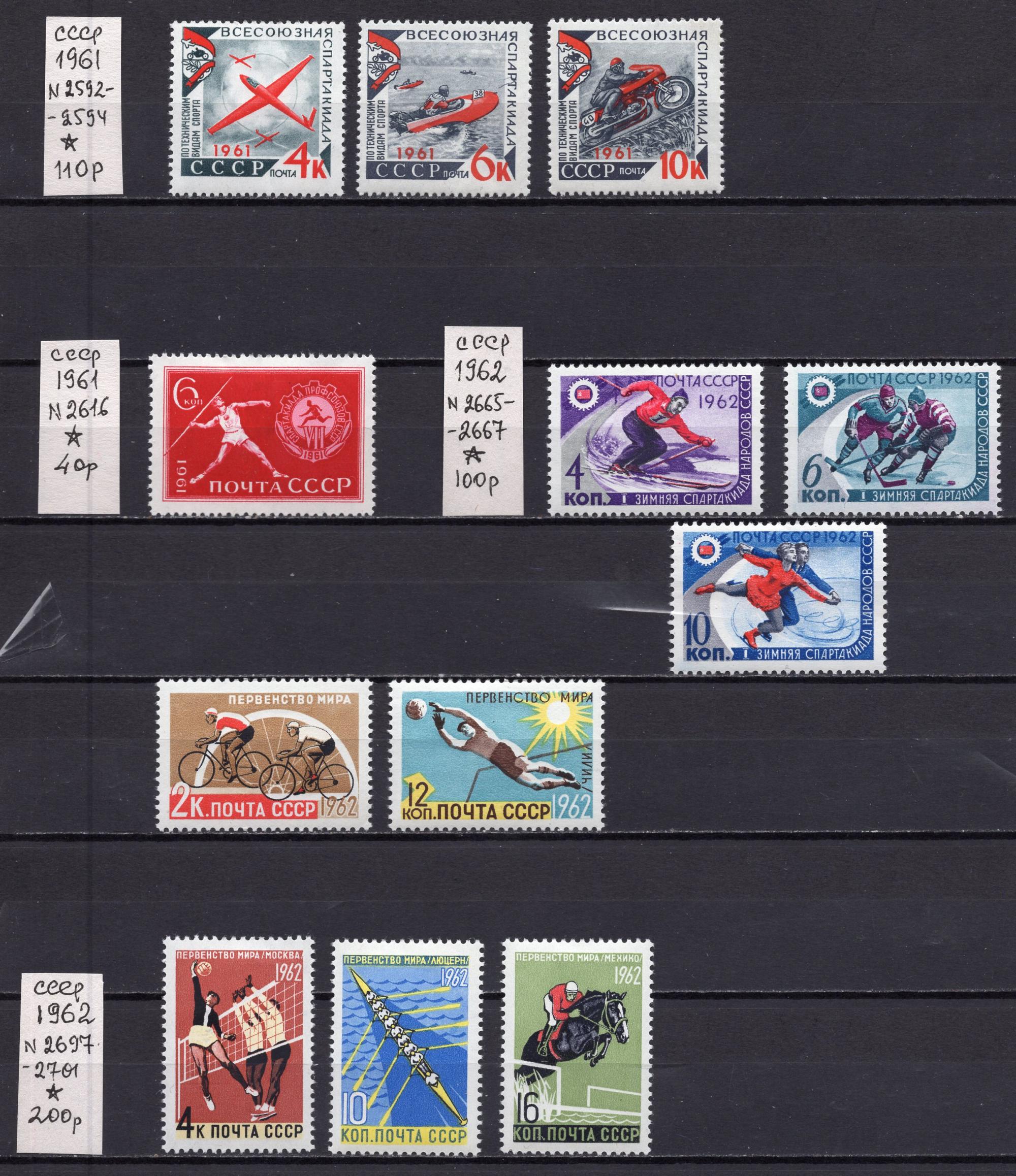 Почтовые марки. СССР, 1961-1962. Спорт. Сборный лот. №2592-94, 2616, 2665-67, 2697-2701.