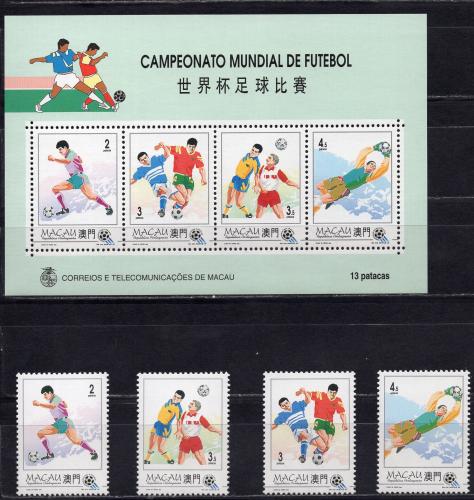 Почтовые марки. Макао, 1994 г. №759-762. Бл.27. Футбол. (Mi 17.5 e)