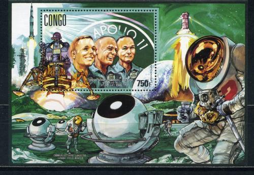 Почтовые марки. Конго. 1991г. Космос. Аполло-11. Блок №69.