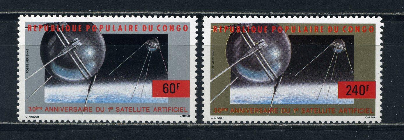 Почтовые марки. Конго. 1987г. Космос. Первый спутник. №1074-1075.