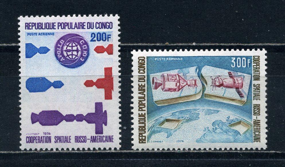 Почтовые марки. Конго. 1974г. Космос. Союз-Аполлон. №417-418.