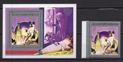 Почтовые марки. Конго. 1992г. Космос. Собака в Космосе. №1307. Блок №87.