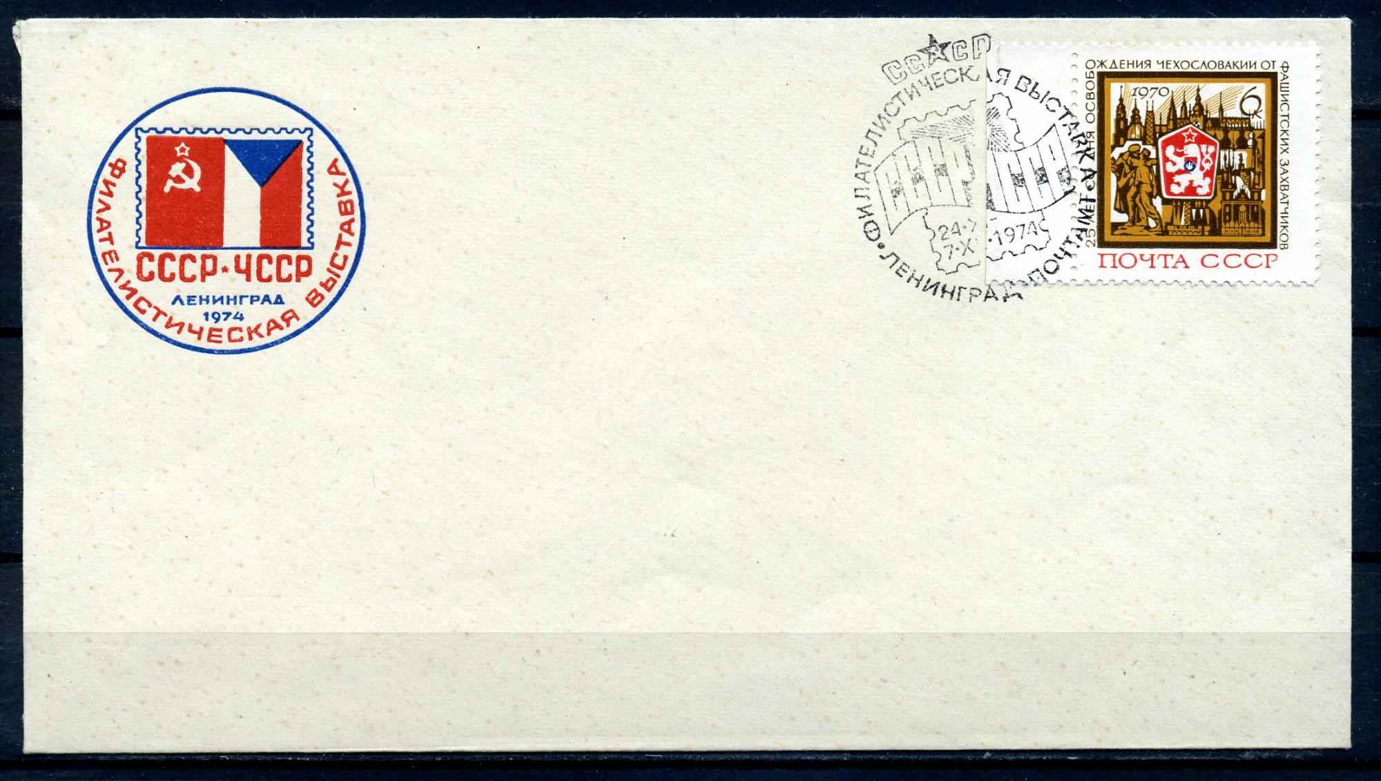 Конверт с маркой и СГ. СССР 1974 г. Фил.выставка СССР-ЧССР. КО.