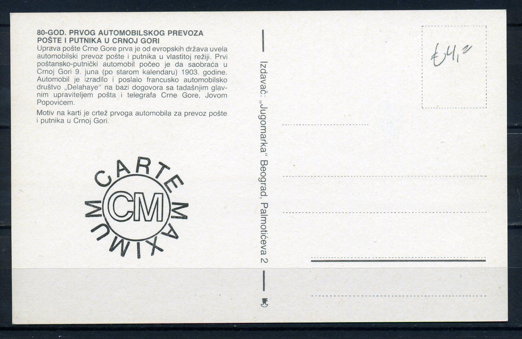 Картмаксимум. Югославия 1983 г. Почтовые и пассажирские перевозки.