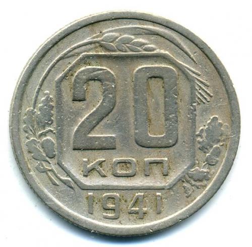 Монеты СССР. 20 копеек 1941 г.