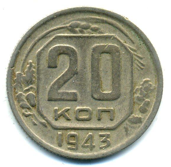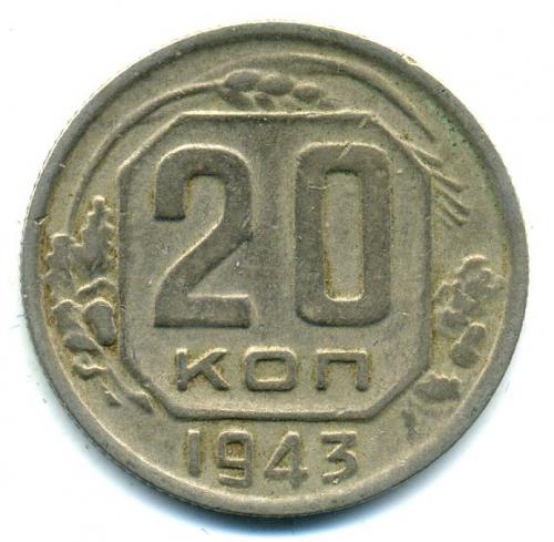 Монеты СССР. 20 копеек 1943 г.