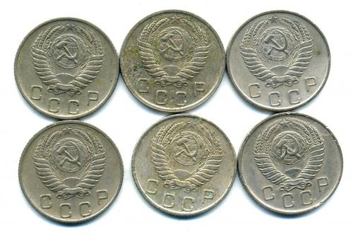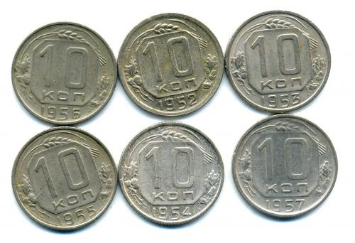 Монеты СССР. 10 копеек 1952-2957 г. 6 шт.