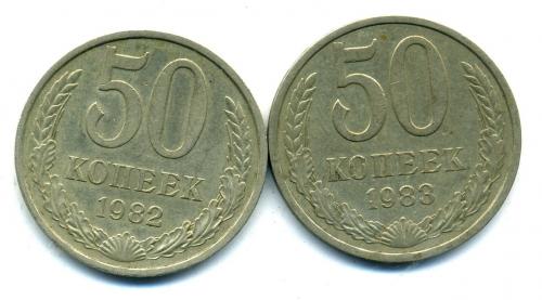 Монеты СССР. 50 копеек 1982, 1983 г. 2 шт.
