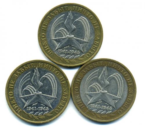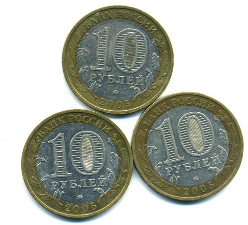 Монеты России. 10 рублей 2005 г. 3 шт.