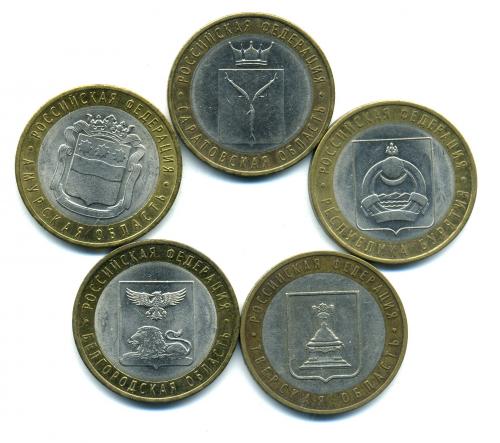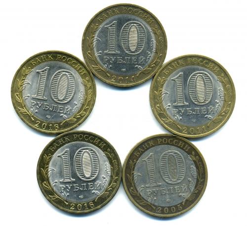 Монеты России. 10 рублей 2005-2016 г 5 шт.