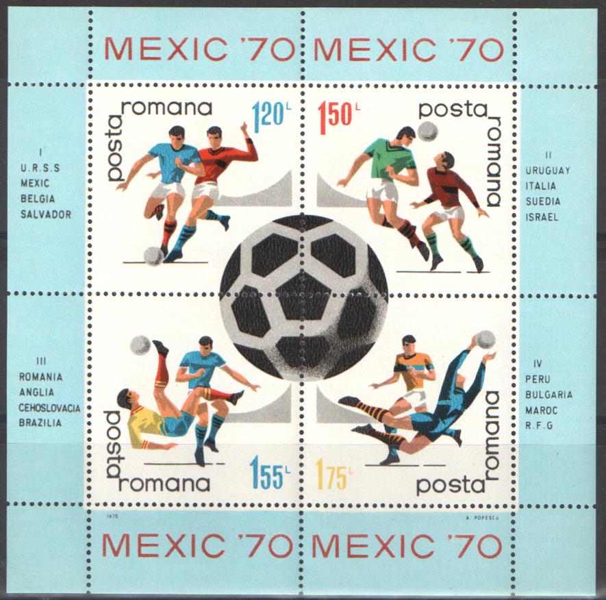 Почтовые марки. Румыния. 1970. Футбол. ЧМ в Мексике. № Бл. 75