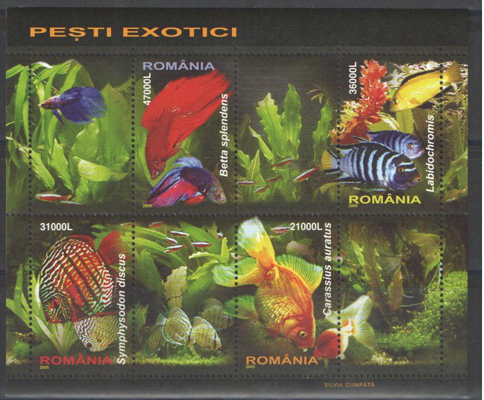 Почтовые марки. Румыния. 2005. Экзотические рыбы. № Бл. 351