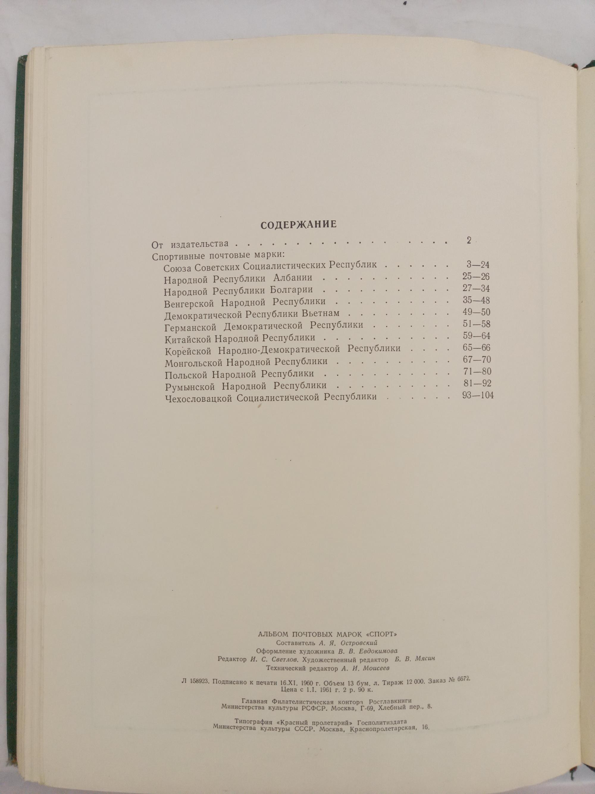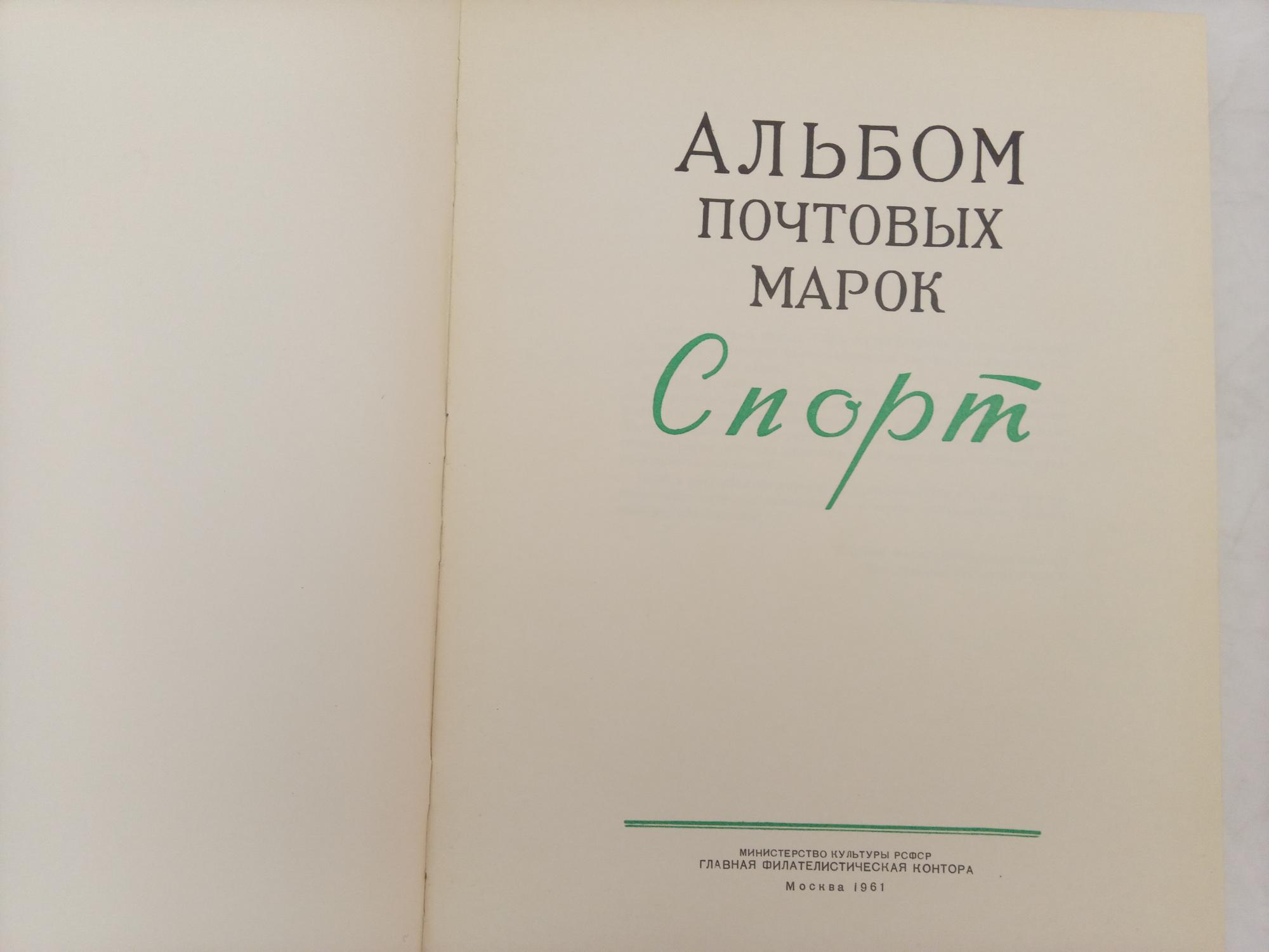 Иллюстрированный альбом для марок. СССР 1961 г. Спорт. 210 х 280 мм. 104 стр. Б/У. См. сост.