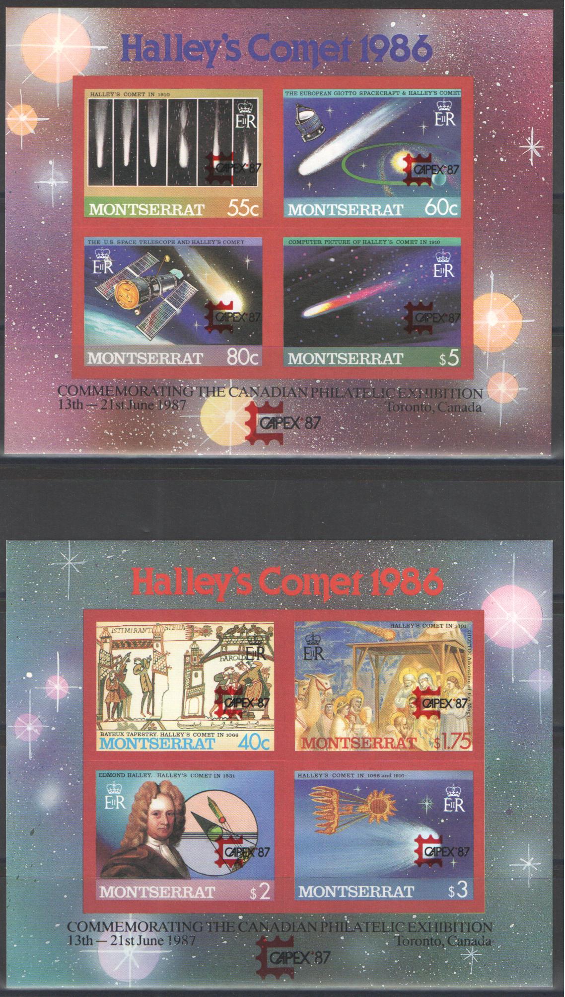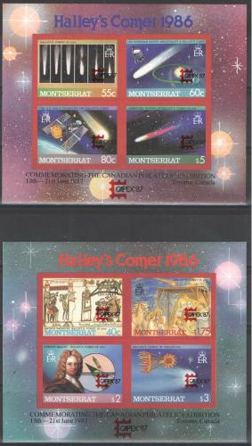 Почтовые марки. Монтсеррат. 1987. Космос. Комета Галлея. Надпеч. БЕЗЗ. № Бл. 44-45В