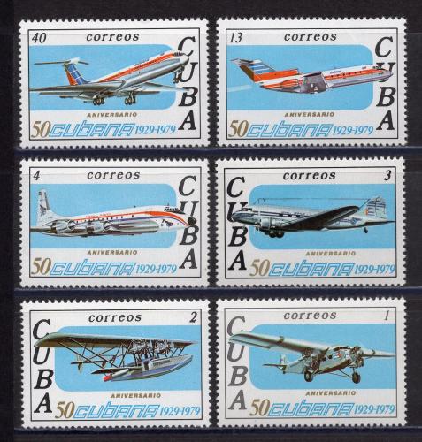 Почтовые марки. Куба. 1979. Самолёты. №2430-2435.