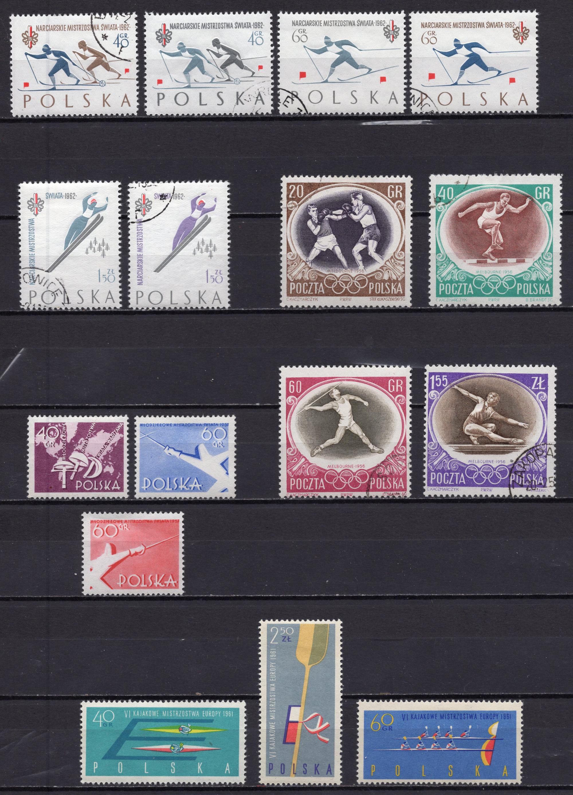 Почтовые марки. Польша, 1956-1962 г. Сборный лот. №1294-9, 1005-7, 1254-56.
