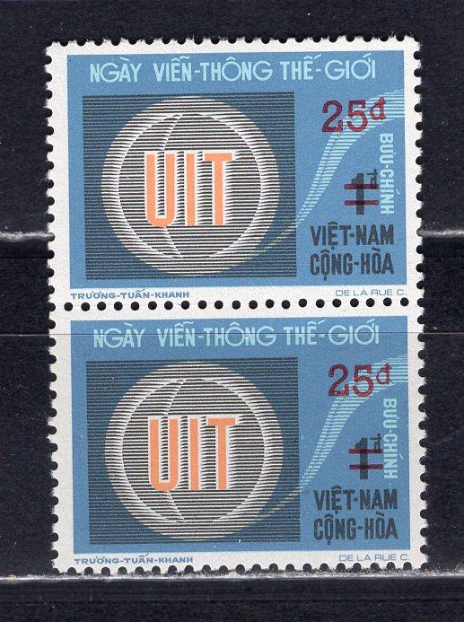 Почтовые марки. Южный Вьетнам. 1974г. Телеком. Надпечатка. №576. Сцепка (Mi: 9.00 Евро х 2).
