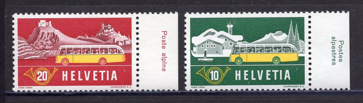 Почтовые марки. Швейцария. 1953г. Почта. Автобусы. №586-587.
