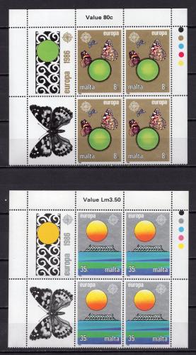 Почтовые марки. Мальта. 1986г. Европа. Бабочки. №746-747. КБ + куп. (20,0 е)