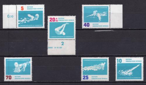 Почтовые марки. ГДР, 1962 г. Спорт. Водные виды. №907-912.