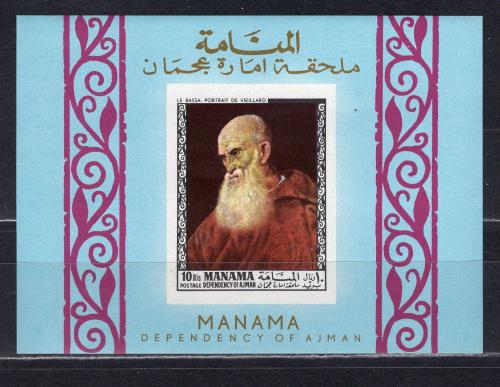 Почтовые марки. Манама. 1968г. Живопись. Блок №446в. Беззубц.