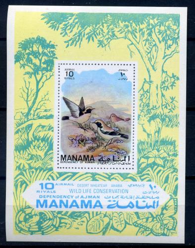 Почтовые марки. Манама. 1971г. Блок №106. Беззубц. Птицы.