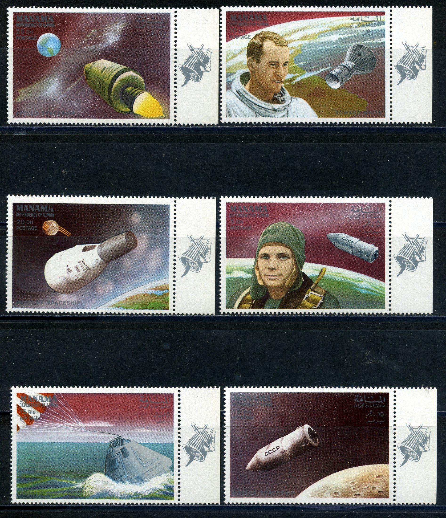 Почтовые марки. Манама. 1968г. Космос. Астронавты. №115-120.
