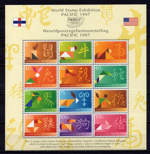 Почтовые марки. Нидерланды, Антиллы, 1997 г. Филвыставка. Знаки зодиака. Бл. 45 (14,0 е)